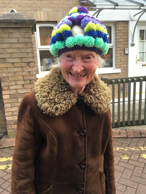 and a pic I took of her in her tea cosy….she used to wear it when she went out in the winter!